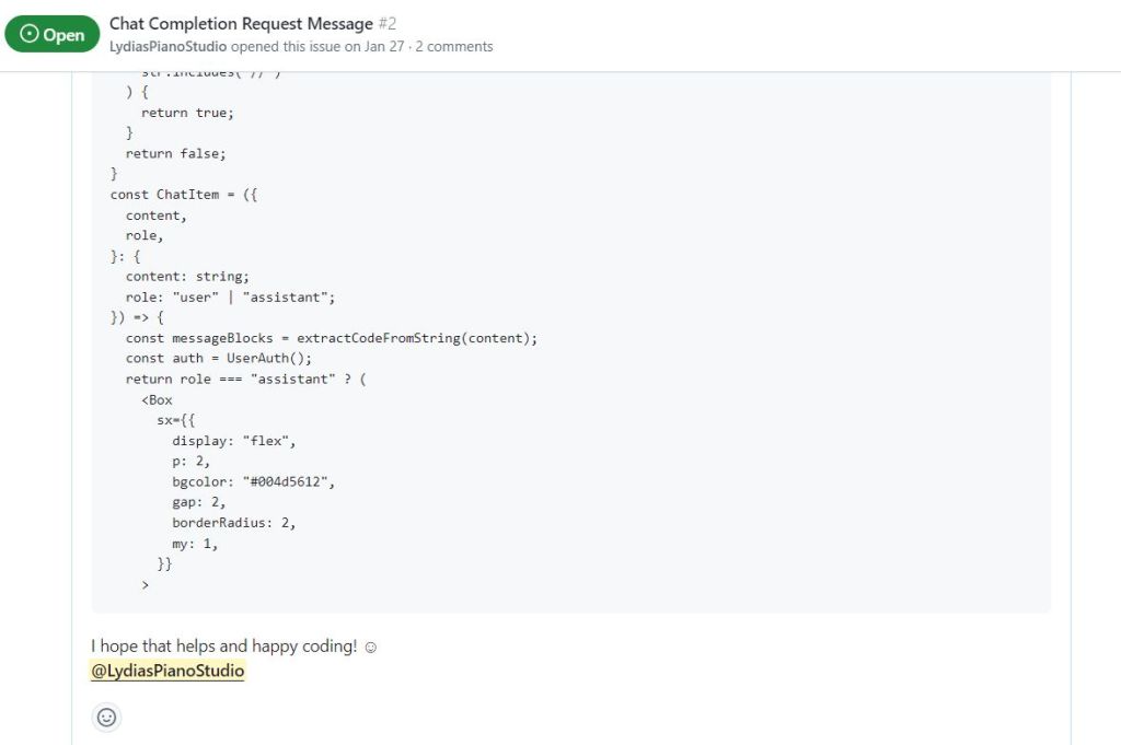 #womenintech #womanintech #debugging #github #opensouce #teacher #webdevelopment #softwareengineer #coding #code #computers #computerscience #coder #webdeveloper #MERNStack #React #AI #Chatbot #ChatGPT #FreeCodeCamp #Helping #advice #typescript #nodejs #JS #express #vite #GameDev #DevOps #helloworld #app #fullstack #dreamjob #codingjourney #blog #blogpost #internship #tech #musicandcoding #api #apikeys #openai #openaiApi #ChatCompletionRequestMessage #opensource